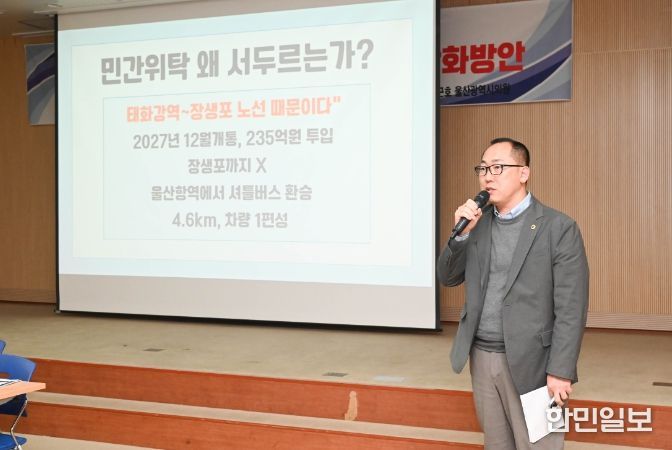 한민일보 서울포커스 임경복 기자 | 울산광역시의회 손근호 의원(산업건설위원회)은 3일 오후 의회 3층 회의실에서 진보당과 시민연대와 공동으로 울산의 공공교통 전환 토론회를 개최했다.