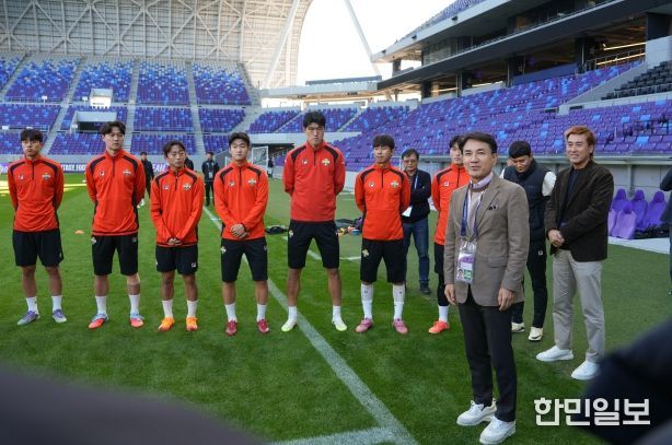 한민일보 서울포커스 최성훈 기자 | 김진태 강원특별자치도지사(구단주)는 11월 3일 오후 3시, 일본 히로시마 에디온 피스 윙 스타디움을 방문해 아시아챔피언스리그 조별리그 원정경기를 앞두고 훈련 중인 강원FC 선수단을 격려하고 응원의 메시지를 전했다.