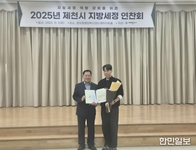 연구과제 발표 결과 “지속가능한 관광발전을 위한 관광세 도입 방안”을 발표한 세무과 세무9급 최주호주무관이 최우수를 차지하는 영예를 얻었으며, 최우수 수상자는 2026년 개최되는 충청북도 주관 지방세정 연찬회 제천시 대표로 참가하게 된다.