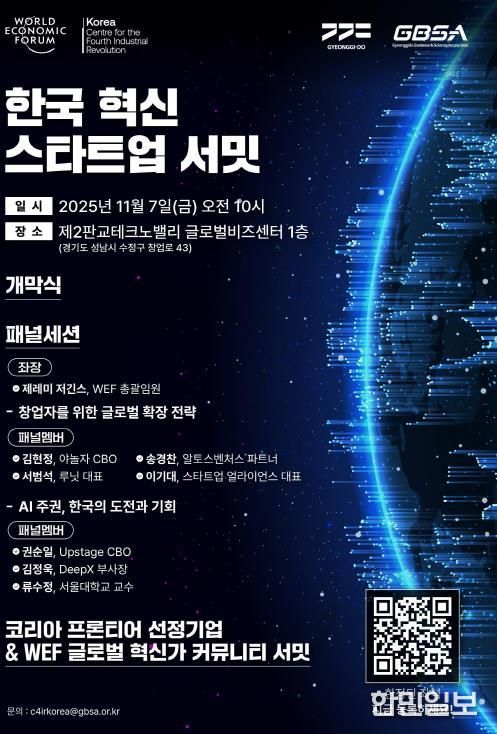 경기도는 오는 7일 세계경제포럼과 공동으로 ‘한국 혁신 스타트업 서밋(Korea Innovators Community Summit)’을 개최한다고 4일 밝혔다. 제2판교테크노밸리 글로벌비즈센터에서 열리는 이번 행사는 세계경제포럼과 경기도가 공동으로 선정한 한국 대표 혁신 스타트업들이 한자리에 모이는 최초의 공식 행사다. 세계경제포럼 혁신가 커뮤니티에 소속된 한국 기업과 함께 국내 유니콘 기업들이 참여한다.