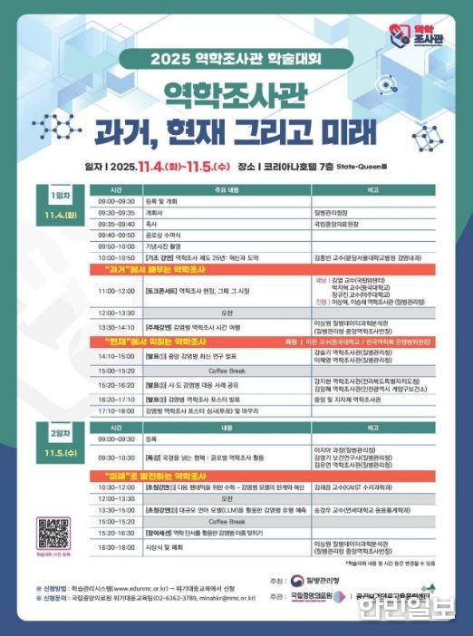 한민일보 서울포커스 임광현 기자 | 질병관리청은 11월 4일~5일 양일간 ‘역학조사관 과거, 현재 그리고 미래’를 주제로 '2025년 역학조사관 학술대회'를 개최한다.