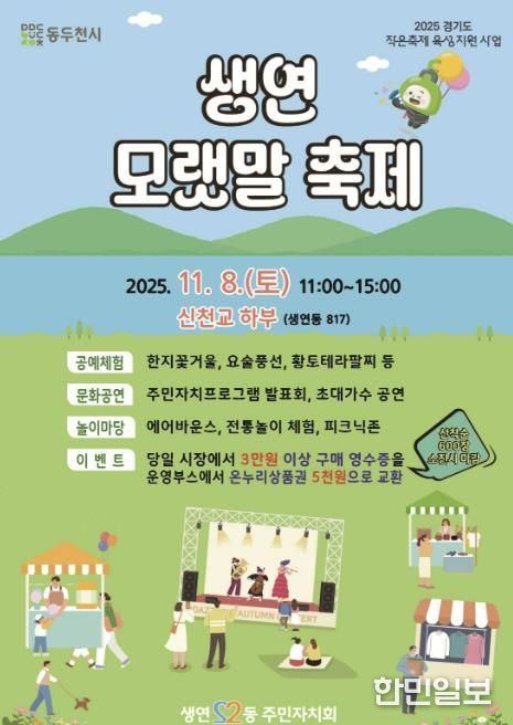 한민일보 서울포커스 임경복 기자 | 동두천시 생연2동 주민자치회는 오는 11월 8일 오전 11시, 신천교 하부 공간에서 ‘2025년 생연 모랫말 축제’를 개최한다.