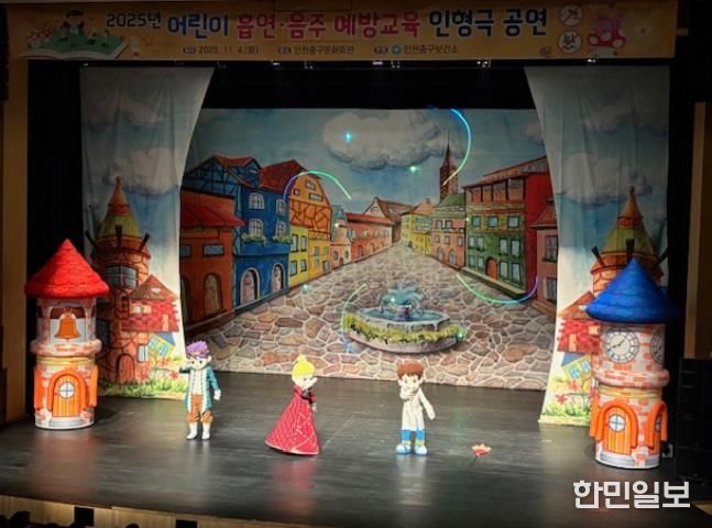 한민일보 서울포커스 백진욱 기자 | 인천시 중구는 지난 4일 중구문화회관에서 관내 원도심 지역 어린이집·유치원 등 유아를 대상으로 ‘흡연·음주 예방 인형극 공연 및 캠페인’을 실시했다.