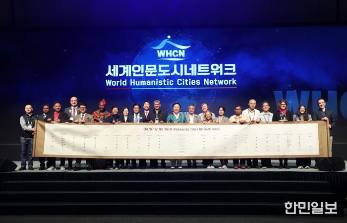 6일 오후 열린 WHCN 총회는 국악 취타대의 웅장한 연주 속에 각국 대표단이 입장하며 개막했다. ‘인문가치로 여는 협력과 연대의 길’을 주제로 진행된 총회에서는, 회원 도시 대표들이 헌장이 인쇄된 대형 족자에 도장을 날인하는 퍼포먼스를 통해 도시 간 인문적 연대와 협력 의지를 상징적으로 선언했다.