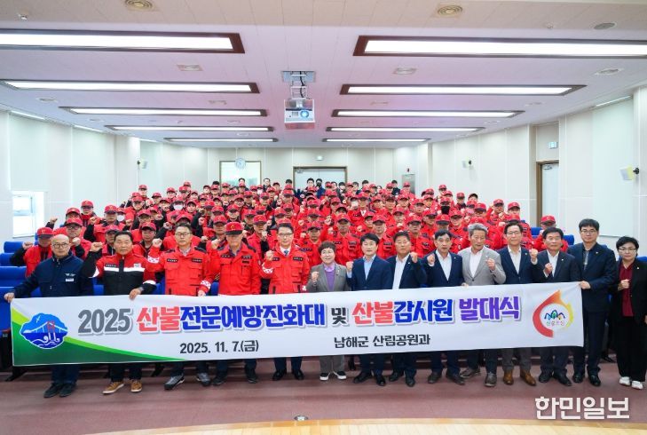 한민일보 서울포커스 김서윤 기자 | 남해군은 7일 남해마늘연구소 대강당에서 ‘산불전문예방진화대 및 산불감시원 발대식’을 개최했다.