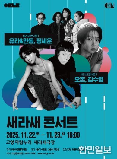 한민일보 서울포커스 김은금 기자 | (재)고양문화재단은 소극장 기획공연 시리즈 ‘2025 새라새 ON 시리즈’의 11월 프로그램으로, 감각적인 싱어송라이터들을 만날 수 있는 '새라새 콘서트 1~2'를 11월 22일과 23일 양일간 고양아람누리 새라새극장에서 개최한다.