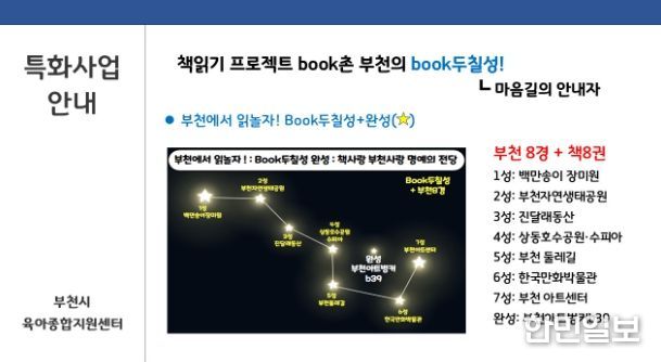 한민일보 서울포커스 김윤이 기자 | 부천시육아종합지원센터는 ‘책 읽는 도시 부천’에 발맞추어 2025년 영유아 독서 특화사업 ‘BOOK촌 부천의 BOOK두칠성!’으로 영유아의 발달적 특성과 요구에 맞춘 다양한 독서 프로그램을 운영하고 있다.