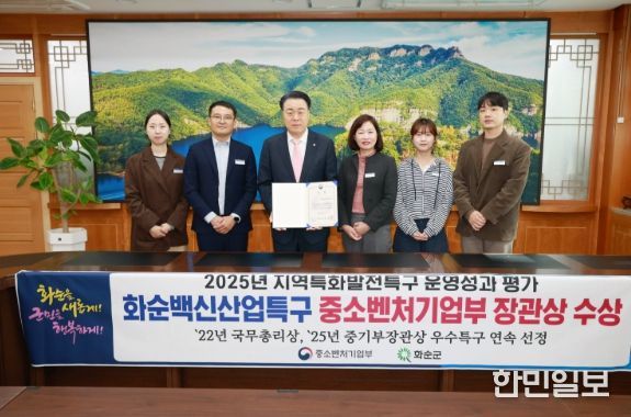 한민일보 서울포커스 박용남 기자 | 화순군은 중소벤처기업부에서 실시하는 '2025년도 지역특구 운영 성과 평가에서 화순백신산업특구가 ‘우수 특구’로 선정돼 중소벤처기업부 장관상의 영예를 차지했다고 10일 밝혔다.