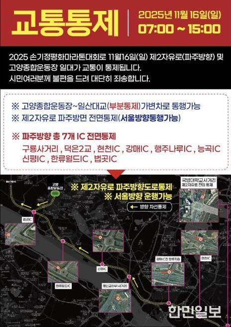 한민일보 서울포커스 김은금 기자 | 고양특례시는 오는 16일(일) ‘2025. 손기정평화마라톤대회’ 개최에 따라 고양시 주요 도로 교통통제에 시민들의 적극적인 협조를 당부했다.