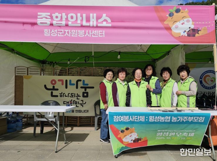 축제 현장에는 ▲횡성농협 농가주부모임(회장 이순덕) ▲소비자교육중앙회 횡성지회(회장 이진영) ▲자유총연맹 횡성봉사단(단장 문순복) ▲횡성사회복지대학봉사단(단장 김옥선) ▲출동봉사단(단장 남원봉) 등 5개 자원봉사단체가 참여했다.