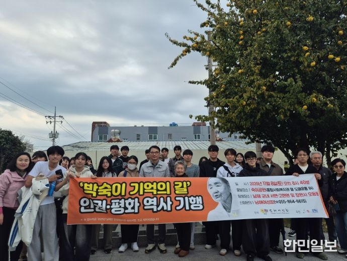 한민일보 서울포커스 김서윤 기자 | 남해여성회는 지난 8일 오전 남해군민 37명이 참여한 가운데 남해군 숙이공원에서 ‘박숙이 기억의 길 인권·평화 역사 기행’을 진행했다.