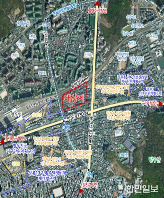 이번 계획은 제2종일반주거지역(7층 이하)을 제3종일반주거지역으로 전면 상향해 사업성을 높였다. 도로 여건도 크게 개선한다. 망우로63길을 기존 6m에서 11m로 확폭해 보차혼용 도로를 양측 보도를 갖춘 진출입로로 바꾼다. 망우로63길에는 공동이용시설을, 용마산로변에는 연도형 가로활성화 시설을 배치해 지역 주민이 이용할 수 있는 생활공간을 만든다.
