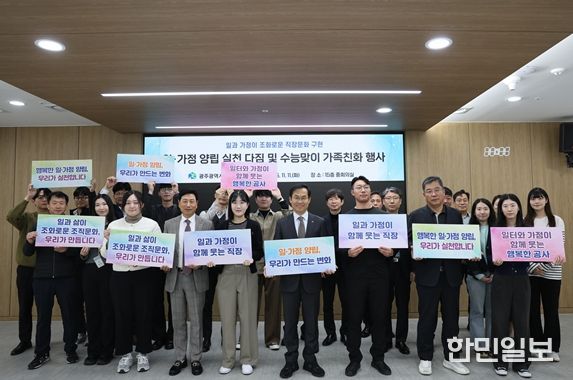 한민일보 서울포커스 박용남 기자 | 광주도시공사는 11일 ‘일·가정 양립 실천 다짐 행사’를 열어 직원이 행복하고 기업이 함께 성장하는 직장문화를 확산하겠다고 밝혔다.