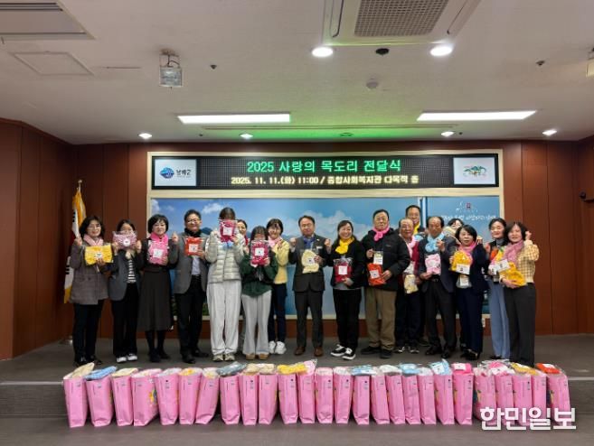 한민일보 서울포커스 김서윤 기자 | 남해군은 지난 11일 종합사회복지관 지하 다목적홀에서 뜨개 나눔 봉사활동을 통해 완성된 목도리 260개를 지역 어르신들에게 전달하는 2025년 사랑의 목도리 전달식을 개최했다.