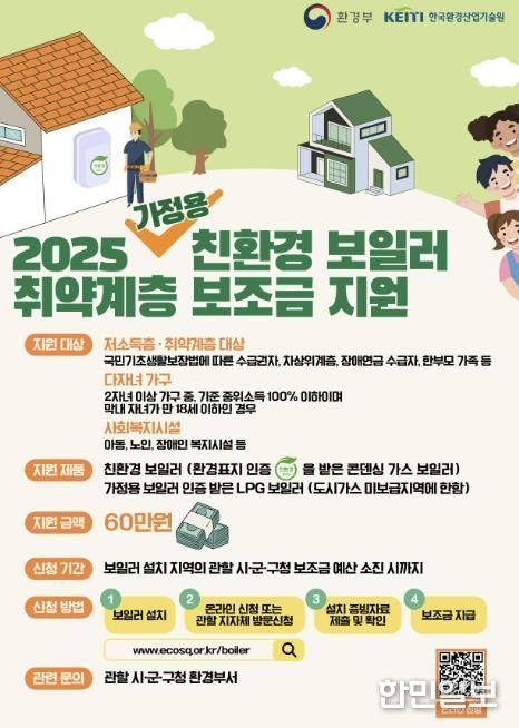 한민일보 서울포커스 임철현 기자 | 보령시는 대기오염 및 온실가스 저감을 위한 ‘2025년 가정용 친환경 보일러 보급사업’의 신청을 받는다고 밝혔다.