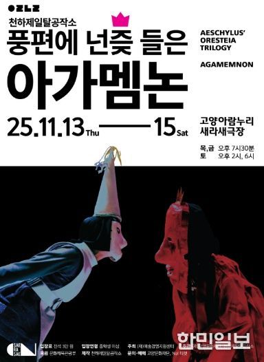 한민일보 서울포커스 김은금 기자 | (재)고양문화재단은 오는 11월 13일부터 15일까지 3일간, 고양아람누리 새라새극장에서 천하제일탈공작소의 탈춤극 〈풍편에 넌즞 들은 아가멤논〉을 선보인다.