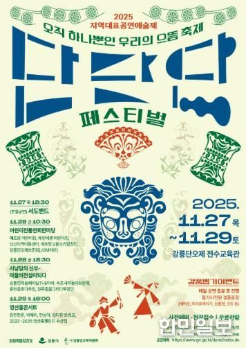 한민일보 서울포커스 임경복 기자 | (사)강릉단오제위원회는 오는 11월 27일부터 29일까지 3일간 강릉단오제전수교육관 일원에서 ‘2025 단단단페스티벌’을 개최한다고 밝혔다.