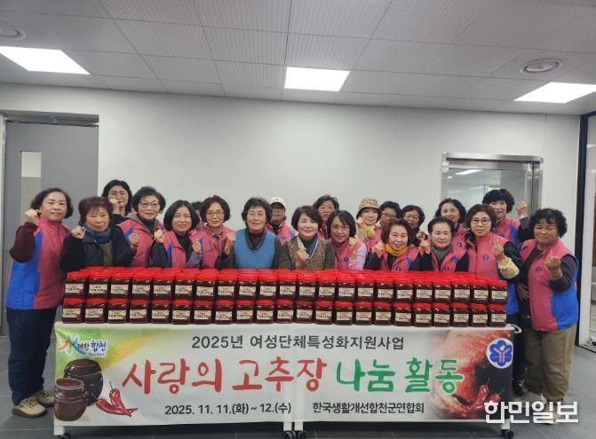 한민일보 서울포커스 김은금 기자 | (사)한국생활개선합천군연합회는 11일과 12일, 이틀 동안 이정임여성단체협의회장, 정순옥 정심회장, 회원 20여 명이 참여한 가운데 농업기술 센터 디미원(조리실습실)에서 고추장 나눔 활동을 실시했다.