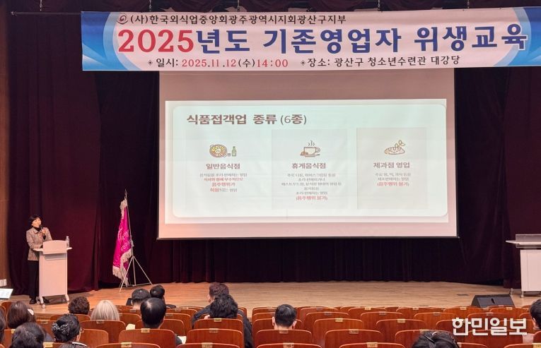 한민일보 서울포커스 박용남 기자 | 광주 광산구는 12일 광산구청소년수련관에서 지역 일반음식점 기존영업자를 대상으로 ‘2025년도 기존영업자 집합 위생교육’이 진행됐다고 밝혔다.