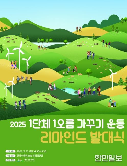 한민일보 서울포커스 진광성 기자 | 제주특별자치도는 오는 15일 오후 한라수목원 숲속 야외공연장에서 ‘1단체 1오름가꾸기 운동 리마인드 발대식’을 개최한다.