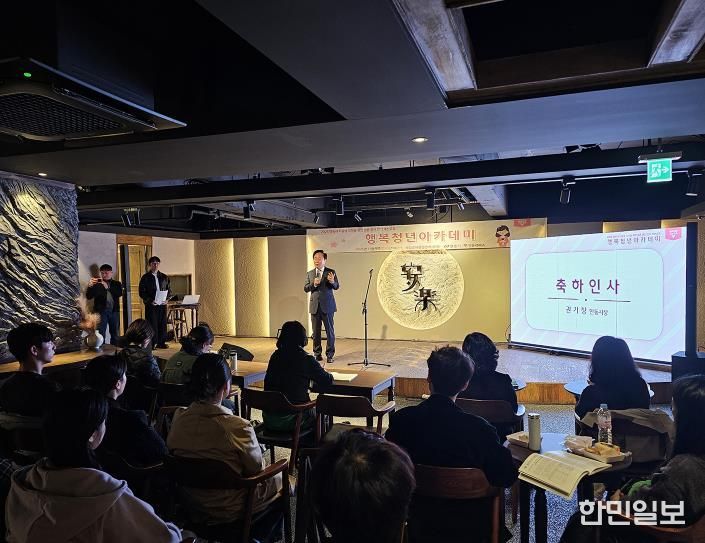 ‘행복청년 아카데미’는 청년층의 결혼․출산 인식 개선과 일․가정 양립 문화 확산을 목표로 추진되고 있으며, 강연․공연․질의응답 등 다채로운 프로그램으로 진행된다.