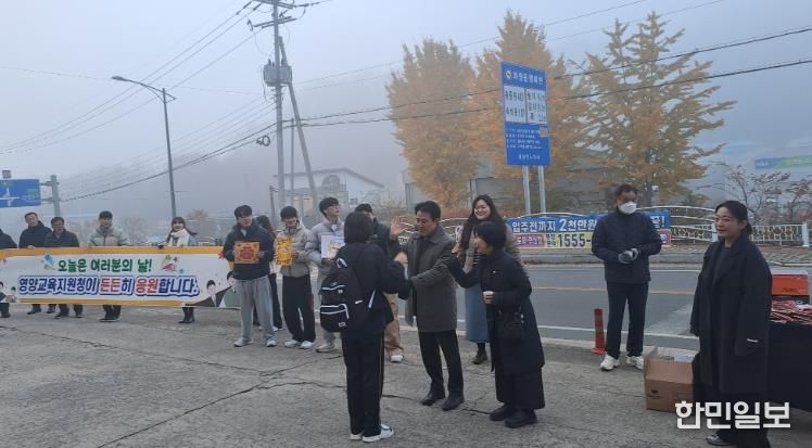 한민일보 서울포커스 임철현 기자 | 경상북도영양교육지원청은 2025년 11월 13일 오전 7시 10분부터 영양여자중·고등학교 정문에서 2026학년도 대학수학능력시험에 응시하는 수험생을 대상으로 수험생 응원 행사를 진행했다.