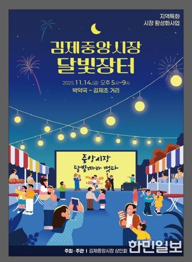 한민일보 서울포커스 박용남 기자 | 김제시는 오는 14일 오후 5시부터 9시까지 김제중앙시장 일원(박약국 ~ 김제초거리)에서 지역 상권 활성화를 위한 ⌜2025 김제중앙시장 달빛장터⌟를 개최한다고 밝혔다.