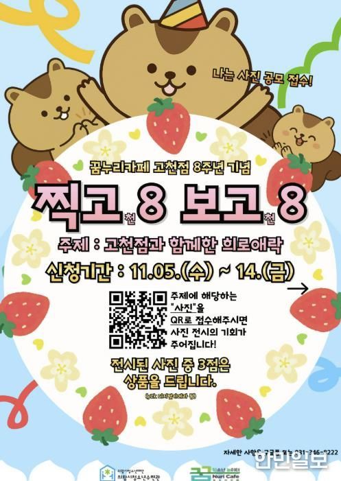 한민일보 서울포커스 전희주 기자 | 의왕시청소년재단 산하 꿈누리카페 고천점이 개소 8주년을 맞아 추진 되는 청소년과 지역 주민이 함께하는 기념 프로그램‘찍고8, 보고8’의 참가자를 11월 14일까지 모집한다.
