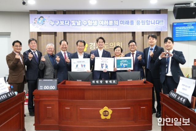 한민일보 서울포커스 김윤이 기자 | 경기도의회 문화체육관광위원회(위원장 황대호)는 오늘 전국 약 55만 명의 수험생이 2025학년도 대학수학능력시험에 임하는 날을 맞아, ‘누구보다 빛날 수험생 여러분의 미래를 응원합니다!’라는 메시지를 전하며 모든 수험생들에게 따뜻한 격려와 힘찬 응원을 보냈다.