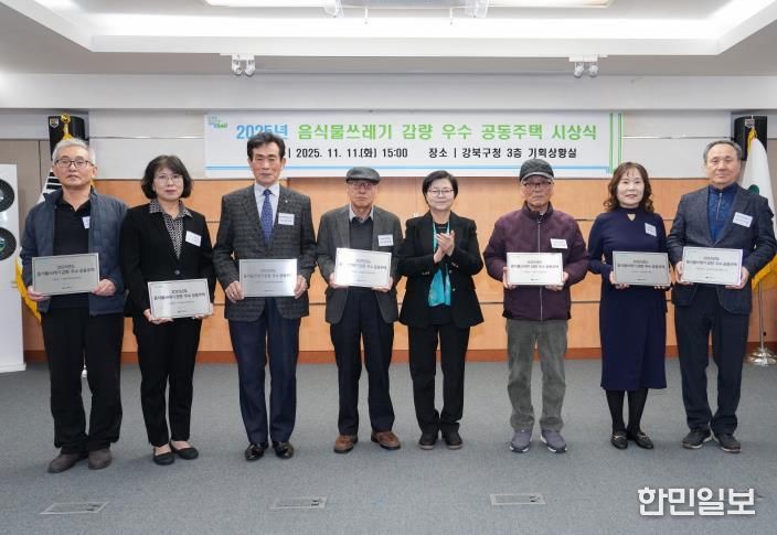 한민일보 서울포커스 김봉순 기자 | 서울 강북구는 11월 11일 구청 기획상황실에서 ‘2025년 공동주택 음식물쓰레기 감량 우수 공동주택 시상식’을 개최했다.