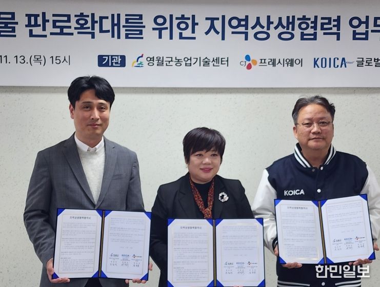 한민일보 서울포커스 진광성 기자 | 영월군농업기술센터는 2025년 11월 13일 목요일 오후 3시, 영월군농업기술센터 2층 회의실에서 CJ프레시웨이, KOICA글로벌인재교육원과 함께 지역상생협력 업무협약을 체결했다.
