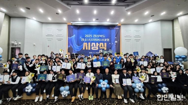 한민일보 서울포커스 김은금 기자 | 경상북도와 경상북도청소년활동진흥센터는 14일 안동그랜드호텔에서 청소년과 지도자 120여 명이 참여한 가운데 자원봉사활동으로 지역사회에 공헌한 청소년, 동아리, 지도자, 활동 터전을 격려하기 위해‘2025 경상북도청소년자원봉사대회’를 개최했다.