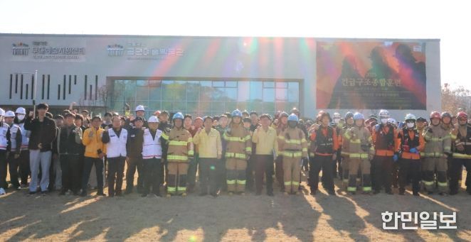 한민일보 서울포커스 진광성 기자 | 파주소방서는 14일 오후 2시, 파주시 탄현면 소재 국립극장 무대예술지원센터에서 파주소방서 주관으로 복합 재난 대응을 위한 긴급구조종합훈련을 실시했다.