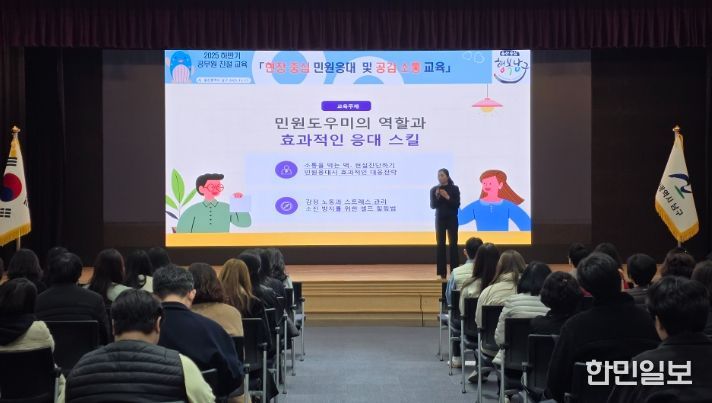 한민일보 서울포커스 기자 | 울산 남구는 17일 남구청 본관 6층 대강당에서 공무원의 친절마인드 제고와 민원응대 역량 강화를 위해‘현장 중심 민원응대 및 공감 소통 교육을 실시했다.