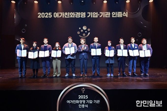 5일 가빈아트홀에서 열린 ‘2025년 여가친화인증 기업·기관 인증식’에는 공공기관 24개, 공기업 12개, 대기업 20개, 중견기업 8개, 중소기업 85개 총 149개사가 참여했으며, 재단은 공공기관 24개 중 한 곳으로 선정됐다.