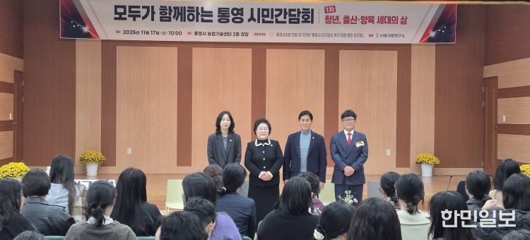 한민일보 서울포커스 김서윤 기자 | 통영시의회 의원연구단체 '통영시 인구감소 위기 대응 방안 연구회'는 11월 17일 전병일 회장과 배도수 의장, 김태균 의원, 김희자 의원과 시민 130여 명이 참석한 가운데 인구감소 위기 극복을 위한 시민 간담회를 개최했다.