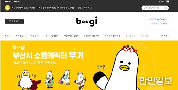 한민일보 서울포커스 임광현 기자 | 부산시는 부산시 소통 캐릭터 '부기' 상품을 한곳에서 구매할 수 있는 네이버 스마트스토어 '부기타운'을 운영한다고 밝혔다.