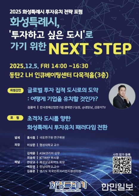 한민일보 서울포커스 진광성 기자 | 화성특례시가 ‘2025 화성특례시 투자유치 전략 포럼’을 다음 달 5일 동탄2 인큐베이팅센터 다목적홀에서 개최한다.