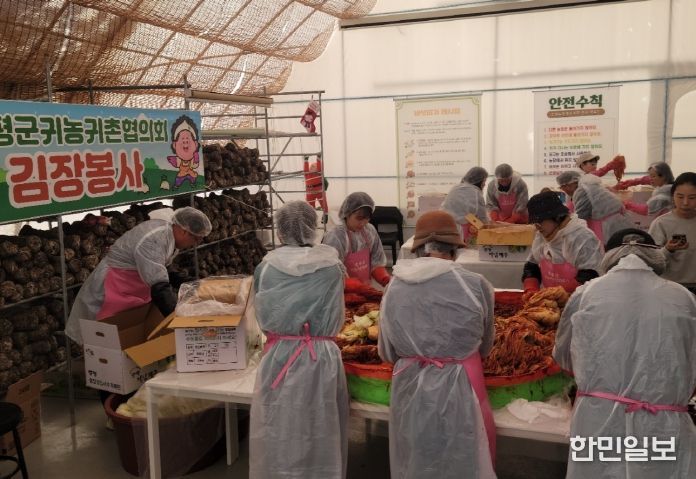 한민일보 서울포커스 김다남 기자 | 충북 증평군은 증평군귀농귀촌협의회(회장 신건석)가 19일 도안면 송정농원 교육장에서 ‘증평군귀농귀촌협의회 김장 나눔 봉사’활동을 진행했다고 밝혔다.