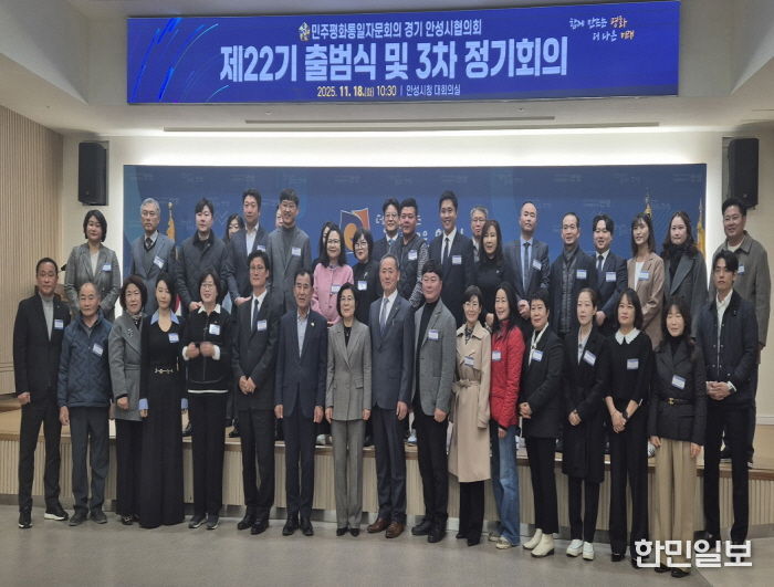 한민일보 서울포커스 임경복 기자 | 민주평화통일자문회의 안성시협의회는 18일 오전, 안성시청 대회의실에서 자문위원 39명이 참석한 가운데 '제22기 민주평화통일자문회의 출범식 및 2025년 3분기 정기회의'를 개최했다.