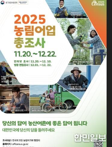 한민일보 서울포커스 김은금 기자 | 합천군은 11월 20일부터 12월 22일까지 ‘2025 농림어업총조사’를 실시한다.