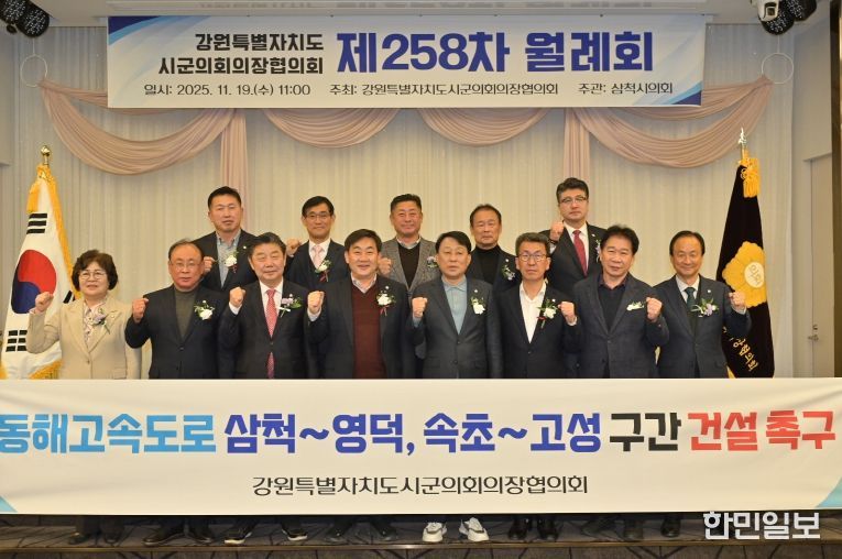 이날 월례회에서 최익순 협의회장(강릉시의회 의장)은 그간 활동 상황을 보고받고 현안 정책과제 추진 안건을 토의했으며 '동해고속도로 삼척~영덕, 속초~고성구간 건설 촉구 건의안'을 의결했다.