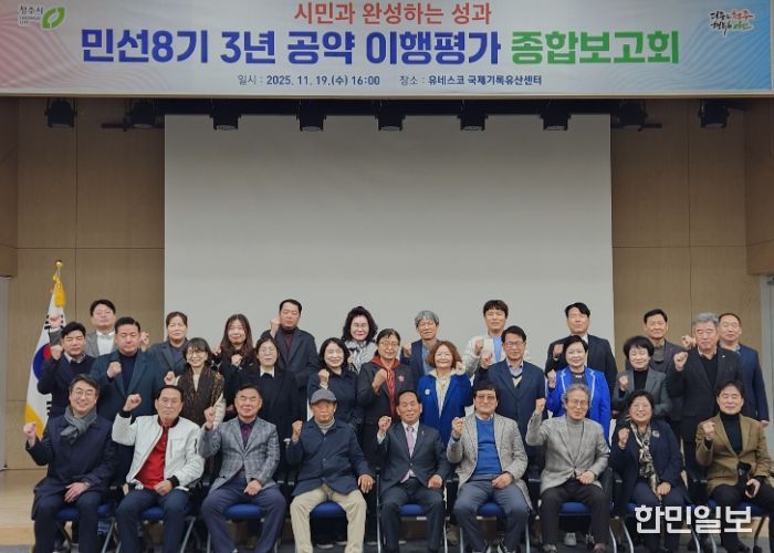 한민일보 서울포커스 김다남 기자 | 청주시는 19일 유네스코 국제기록유산센터에서 공약이행시민평가위원들과 관계 공무원 등 80여 명이 참석한 가운데 ‘민선8기 3년 공약 이행평가 종합보고회’를 개최했다.