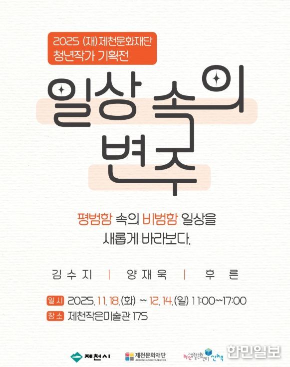 한민일보 서울포커스 김다남 기자 | 제천문화재단이 '2025 '청년작가 기획전''2차 전시를 12월 14일까지 전시한다.