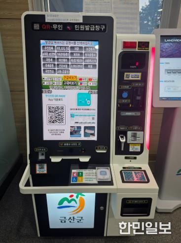 한민일보 서울포커스 유돈상 기자 | 금산군은 지난 19일 금산군청 민원실 및 금산읍·추부면행정복지센터에 설치된 노후민원발급기 3대를 교체했다.