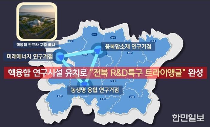 한민일보 서울포커스 임철현 기자 | 전북특별자치도가 '인공태양'으로 불리는 핵융합 연구시설 유치에 총력을 기울이고 있다. 도는 15년 전부터 관련 인프라를 단계적으로 준비해 왔다. 탄소중립 시대 에너지 자립의 핵심 기술로 평가받는 핵융합 분야는 글로벌 시장 규모만 10년 내 400조 원 이상 증가할 전망이다. 이재명 대통령이 "첨단산업 테스트베드로 조성하겠다"고 밝힌 새만금은 교통·전력·연구 네트워크를 모두 갖춰 최적 입지로 손꼽힌다. 차세대 청정에너지 확보를 위해 지역 정·관·산·학이 한목소리를 내며 반드시 성사시켜야 할 과제로 추진 중인 핵융합 연구시설에 대해 살펴본다.