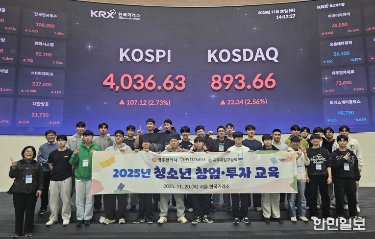 한민일보 서울포커스 박용남 기자 | 광주광역시는 20일 서울 여의도 한국거래소(KRX) 등에서 광주지역 고등학생을 대상으로 ‘2025 청소년 창업‧투자 현장 교육’을 실시했다.