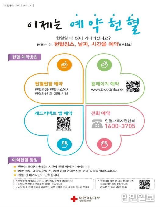 헌혈을 원하는 사람은 대한적십자사 혈액관리본부 또는 한마음혈액원 누리집에서 편리하게 사전 전자문진, 사전예약 후 가까운 헌혈의 집이나 헌혈 카페를 방문하여 헌혈에 참여할 수 있다.