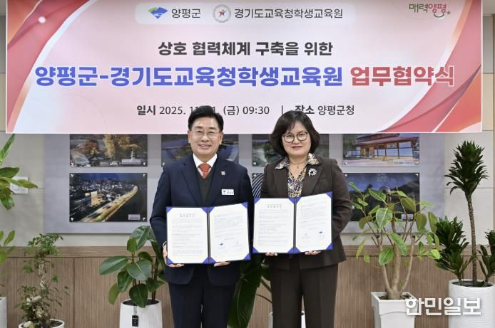 한민일보 서울포커스 차재만 기자 | 양평군은 11월 21일, 경기도교육청학생교육원과 지역기반의 체험 중심 교육 활성화 및 상호 협력체계 구축을 위한 업무협약을 체결했다.