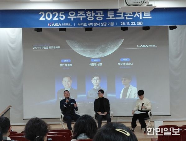 이날 우주를 주제로한 토크 콘서트에는 우주항공청 정인식 중령과 한국항공우주산업 이창한 실장이 강연자로 나서 발사체와 우주에 대한 다양한 이야기를 전달했다. 진행은 과학커뮤니케이터 ‘지식인 미나니’가 맡았다.